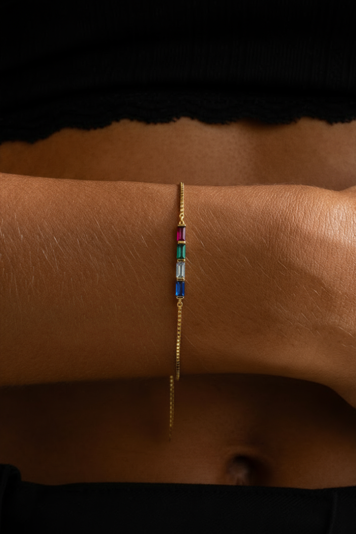 Birthstones started as monthly markers worn for protection and identity, dating back to ancient traditions. This bracelet keeps that idea simple: choose your month, or stack up to four for the people you love. A quiet way to wear your story.